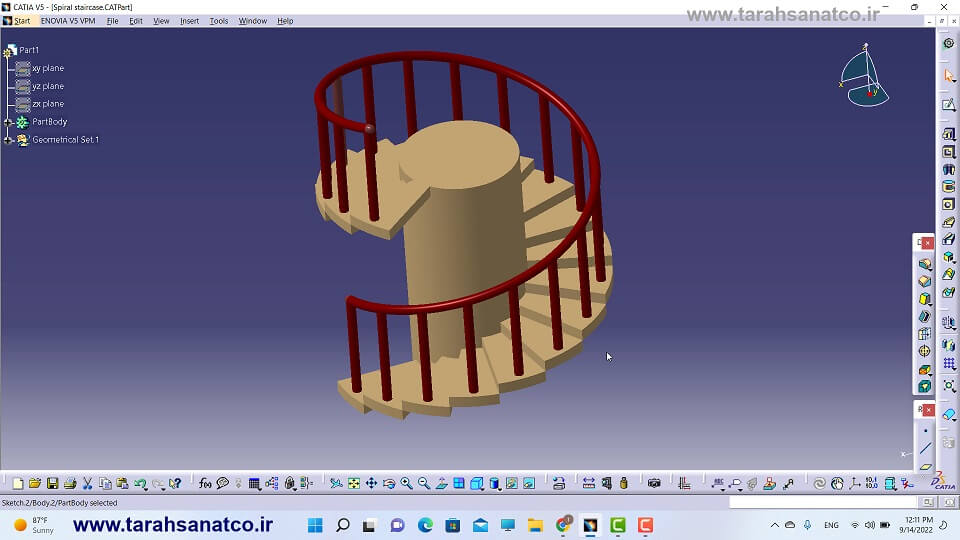 فایل قطعه طراحی شده به همراه نمودار درختی قابل ویرایش در نرم افزار کتیا 2021
